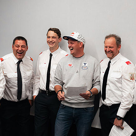 Wenn Skisprung-Legenden auf Feuerwehr-Helden treffen, klingt
